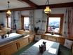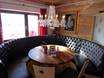 The rustic and cozy hut offers a sun terrace with a beautiful panoramic view. In cold weather, the tiled stove in the lounge provides warmth. Regional delicacies are served.
