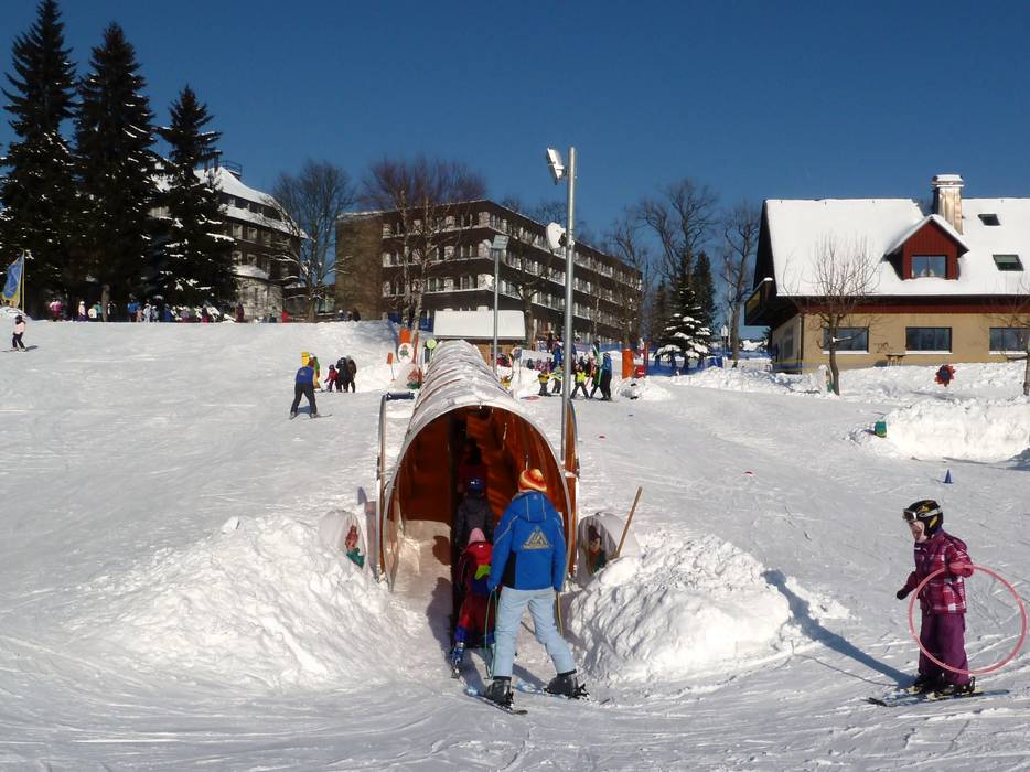 Fichtelchens Winterland is operated by the Vereinigte Skischule Oberwiesenthal and is located right in town. Ideally equipped with six conveyor belts (one of them covered), children can learn to ski in a playful way.