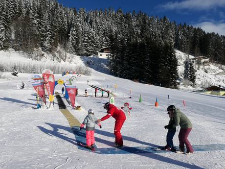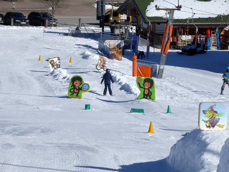 The very large ski school area is located directly in Filzmoos around the Bögrain lift. Magic carpets, practice lifts, visits to animals at the farm, runs through the enchanted forest, wave tracks, and fun with the mascot are just some of the highlights.