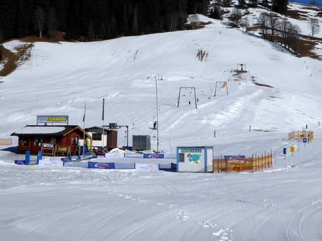 The children's area with magic carpets is located next to the valley station of the Großbergbahn. Children are also supervised by the ski school from the age of two.