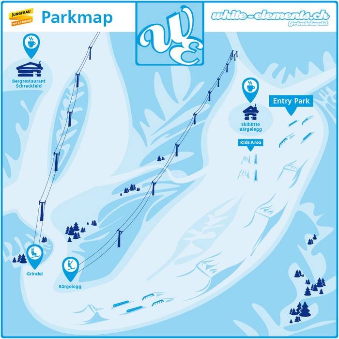 The White Elements Snowpark has been adapted to the terrain and shifted slightly to the right when viewed from below. In the first (upper) section, you will now find two to three rails or boxes, followed by 3-4 kickers, and finally some more rails or boxes at the end. More information at www.jungfrau.ch/white-elements.Personal ohoto album