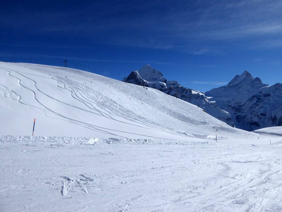 The First ski area offers varied and sunny slopes for all levels of difficulty. Most runs are located above the tree line in high alpine terrain. Only the valley runs are below the tree line. The slopes are mostly easy, and there is even a Slow Slope at Oberjoch. Intermediate and some challenging difficult slopes complete the range. The view of the Eiger and the Wetterhorn accompanies you throughout the day.