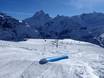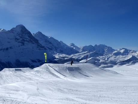 In the First ski area, you'll find one of the largest snowparks in the Bernese Oberland. Additionally, there is a beginner park, a perfectly maintained superpipe, and a skicross.