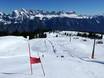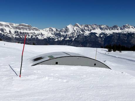 The ski cross course at Flumserberg impresses with waves, jumps, and banked turns. It is located at the Prodkamm eight-seater chairlift.