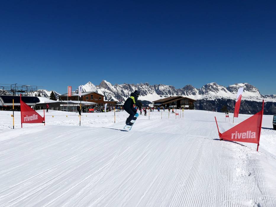 The Family Snowpark between Prodkamm and Prodalp is an exciting course featuring banked turns, jumps, and waves. Fun for kids and parents alike!