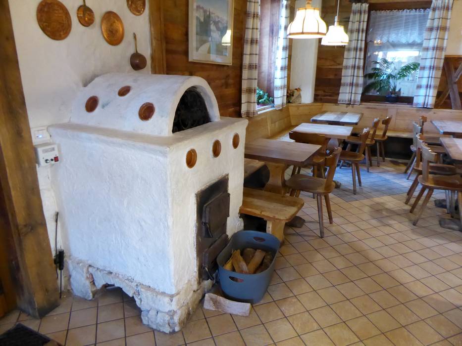 Osteria Coe offers a cozy lounge with a tiled stove and an open fireplace. There are excellent regional specialties. The wine selection is also very good.