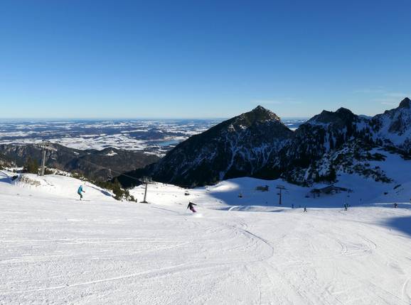 Jochalpe slope with a view of the Allgäu View into the Tannheimer Valley from the valley…