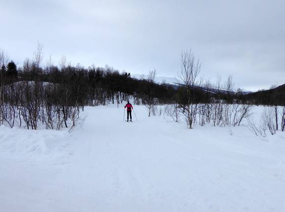 The scenic high-altitude cross-country trail starts directly at the mountain station of the Funäsdalsberget gondola and leads across the open fell terrain. Along the way, it offers an impressive panorama of the vast mountain landscape surrounding Funäsdalen. Thanks to its easy and harmonious route, it is particularly suitable for leisure skiers and beginners who are looking for a short but exceptionally picturesque loop amidst the Nordic mountains.