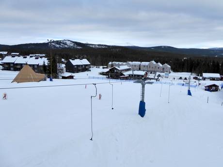 The children's area Lo-Landet is located at the foot of Funäsdalsberget near the Kåvan Guest Center. A platter lift provides access to an easy, child-friendly slope with lovingly designed figures. Along the way, you can conveniently get off halfway or ride all the way to the top and then glide back to the valley station on a gentle run through the forest.