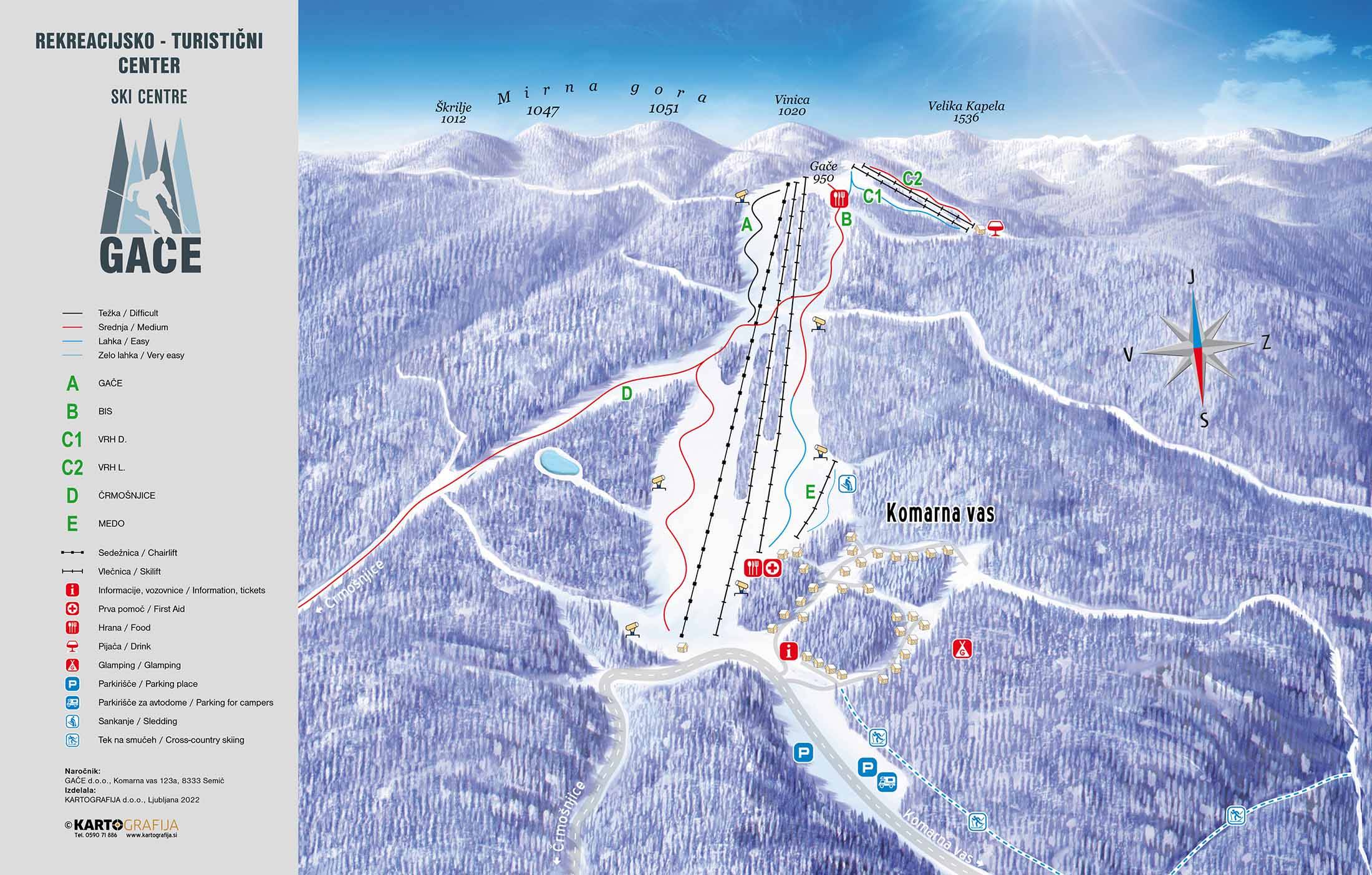Kormarna vas (0.1 km), Semič (13 km) Towns/villages at the ski resort