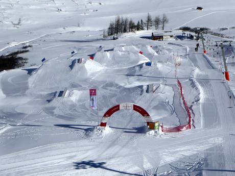 The medium-sized snowpark is located at the Klein-Zeinislift and is shaped daily. Mini Wall, rails, boxes, and jumps attract freestyle enthusiasts.