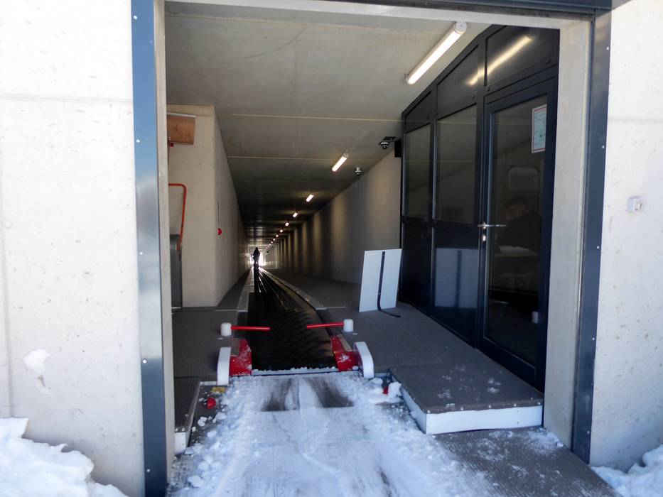 The new conveyor belt is located in the new ski tunnel at Kreuzeck and provides a convenient connection from Hochalm to Kreuzeck. Here, the old rope lift has been replaced. Now, you can comfortably master the short uphill section on a conveyor belt. The conveyor belt is special not only because it runs underground beneath the ski slope, but also because, for the first time in Bavaria, it allows for indirect supervision of a passenger conveyor belt.