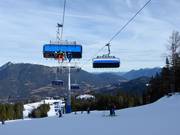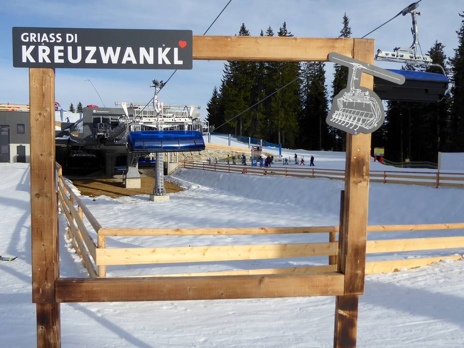 The 8-seater chairlift Kreuzwankl-Ski-Express replaces the previous 6-seater chairlift Kreuzwankl-Ski-Express of the same name. The state-of-the-art 8-seater chairlift features an adjustable, child-friendly boarding area and a reduced ride time. The lift system from Doppelmayr ensures optimized operation on the very popular route on the Hausberg.