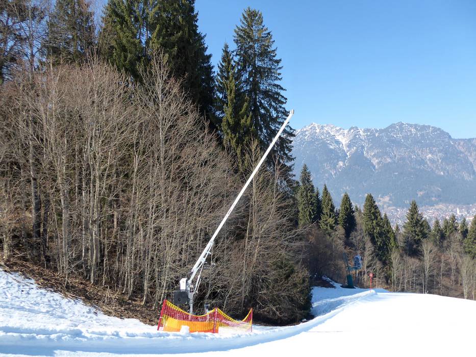The valley runs can be fully covered with artificial snow. The slopes at Hausberg, Kreuzjoch, and up to Kreuzeck are also equipped with snowmaking facilities. Hochalm, Bernadeinlift, and Osterfelderkopf rely on natural snow, but they are situated at a high altitude, so the natural snow lasts well.