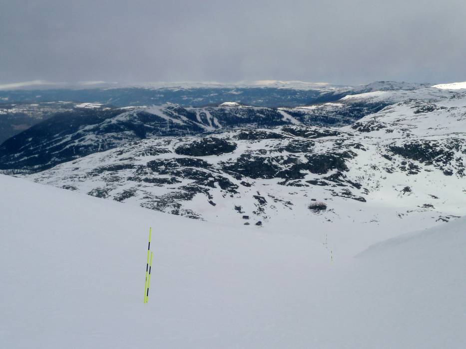 A challenging ski route leads down to the valley from Gaustatoppen.