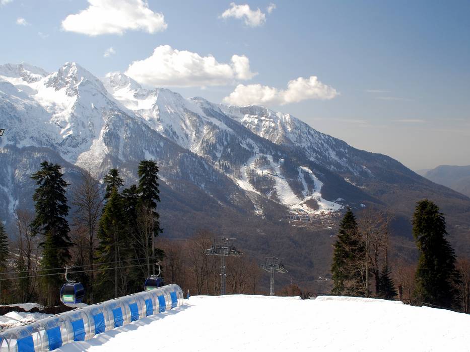 The ski resort Gazprom Mountain Resort is located in Krasnaya Polyana (Sochi) (Southern Russia, Krasnodar).