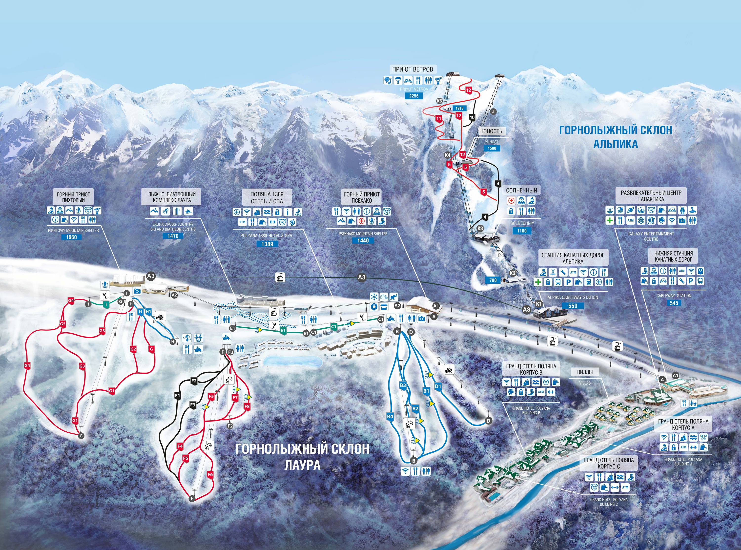 The signage in the ski area is very good and bilingual (Russian/English).