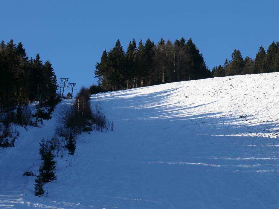 In the ski area, you will find slopes of all difficulty levels: easy slopes in the practice area and at the Forsthaus lifts, intermediate slopes at the chairlift and the other drag lifts, as well as a difficult slope at the Riegellift. The runs lead through forest clearings down into the valley. The slopes stretch across the slopes of the 1,097 m high Geißkopf and the 1,121 m high Einödriegel.