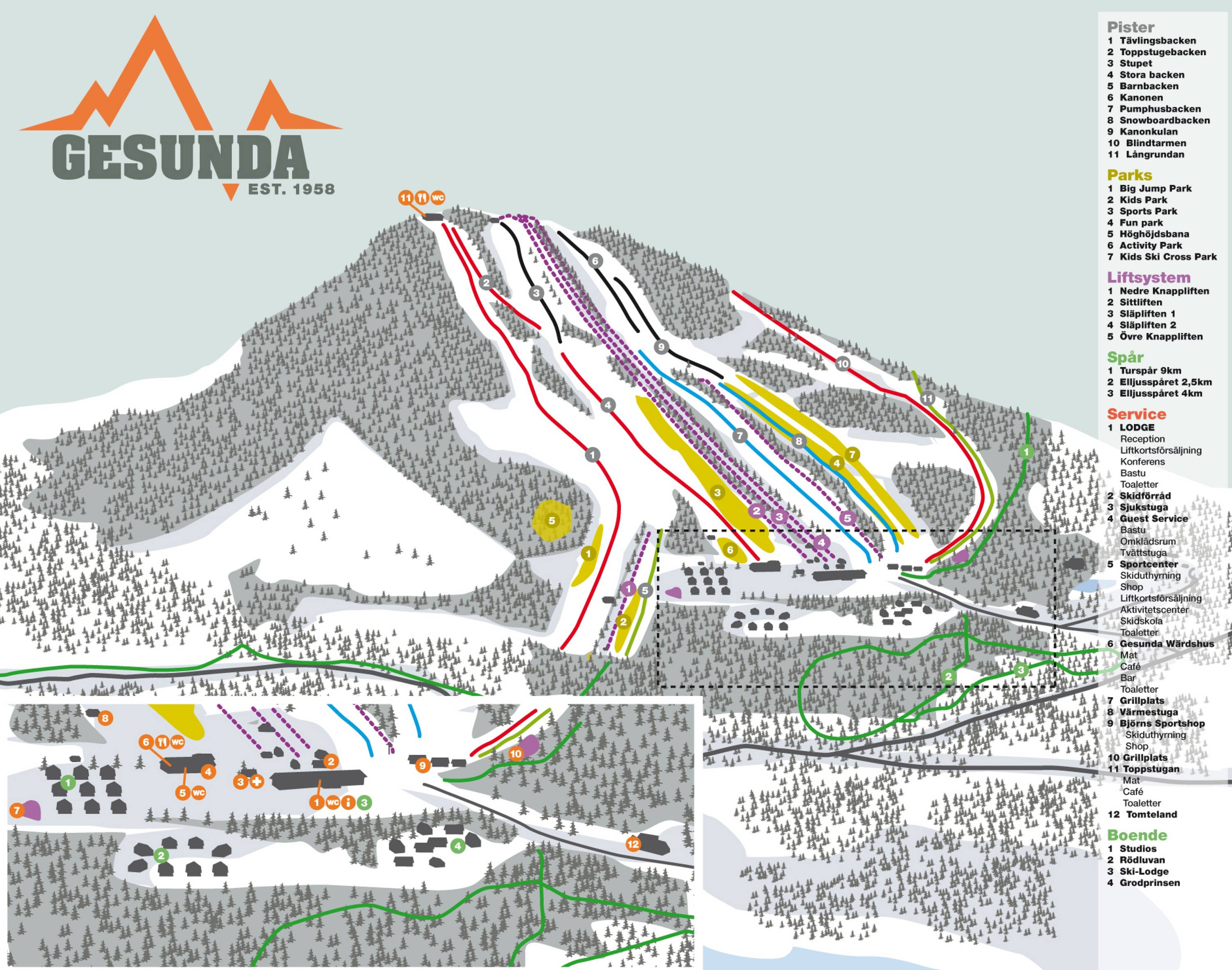 Gesunda (2.7 km), Sollerön (8 km) Towns/villages at the ski resort