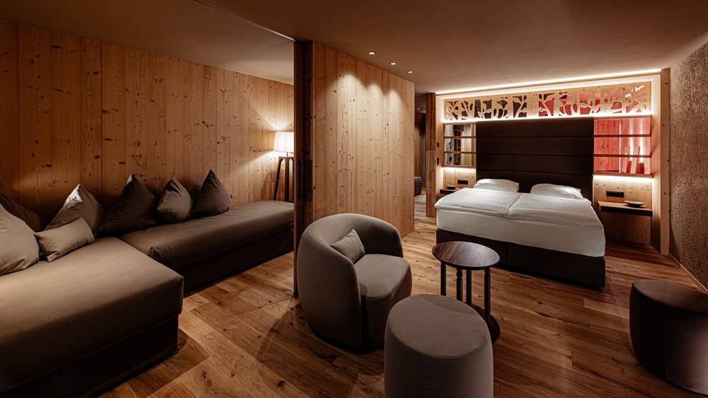 The alpine rooms and suites are furnished with plenty of wood and every imaginable luxury. Decorated with local woods, they exude traditional hotel romance as well as a classic-modern holiday flair. No wish is left unfulfilled here.