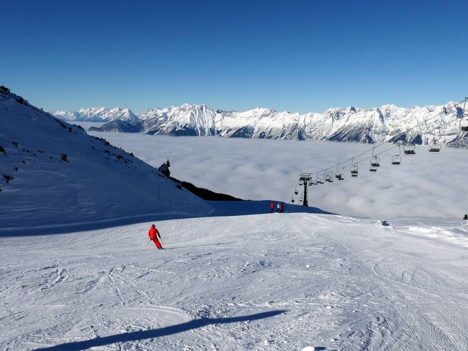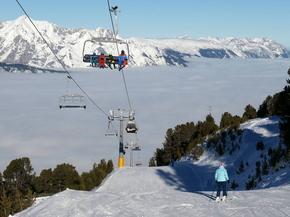 The modern 10-seater gondola takes you up to the panoramic Glungezer ski area. From there, the state-of-the-art "Tulfein Express" combi-lift leads to the Tulfein mountain station. Perfectly groomed slopes surrounded by the stunning nature of the Tux Alps, wide views of the Inn Valley, and 400