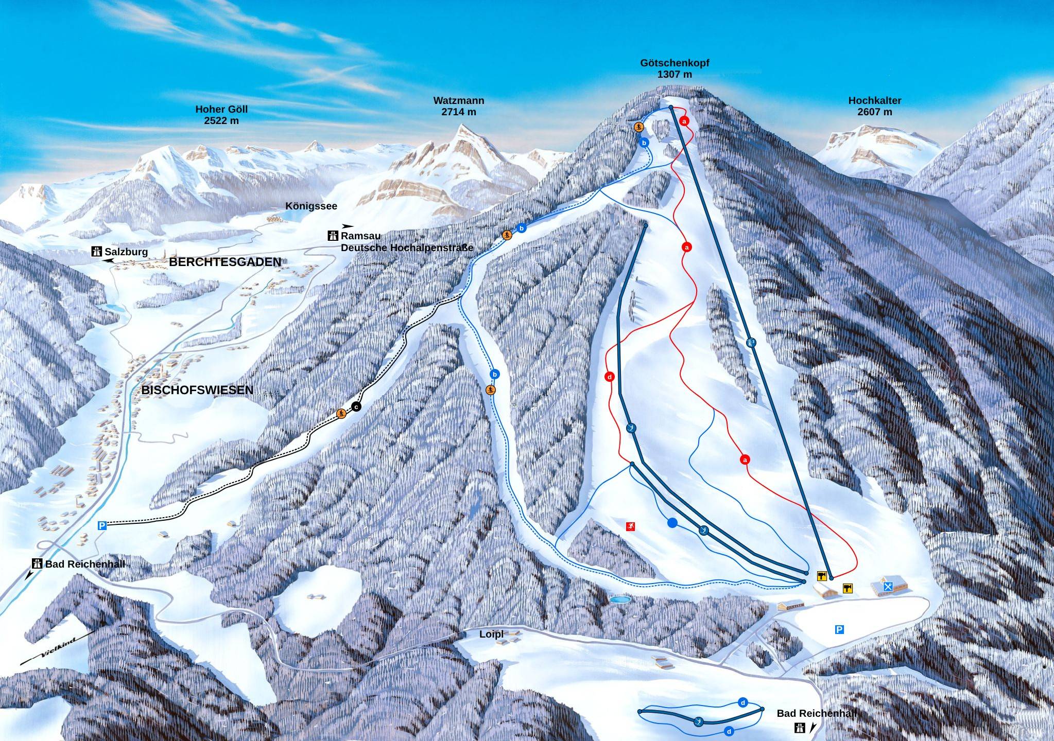 Bischofswiesen (3.3 km), Loipl (0.8 km), Berchtesgaden (9 km) Towns/villages at the ski resort