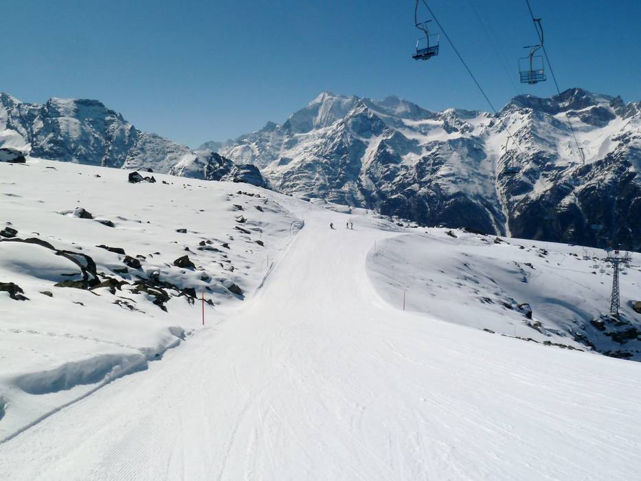 The Grächen ski area offers a very appealing contrast of slopes. Above Stafel, the slopes lead through bizarre rocky landscapes and mighty cliffs. From the ski run Seetalhorn-Durlochhorn-Plattja, you have a spectacular view of the Ried Glacier. The slopes at Hannigalp and down to Grächen are below the tree line and without rocky landscapes. Overall, the slopes are mostly of intermediate difficulty. There are some easy slopes at Hannigalp and one challenging descent.