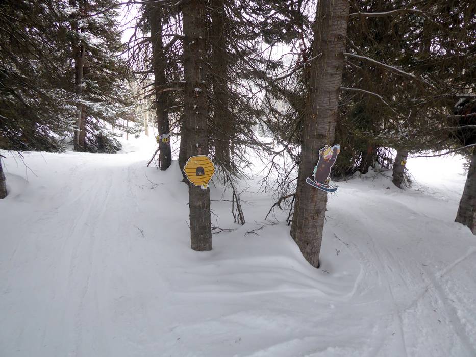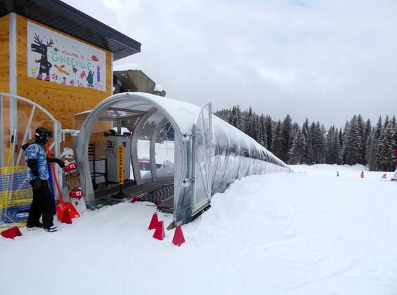 The Kids Adventure Zone (also known as Gheeville) is a great attraction for children and families in the Grand Targhee ski resort. It’s like a big adventure land equipped with various slopes and figures. There is also the North Pole Snowpark here. Everything is accessible via the Shoshone Lift four-seater chairlift and the Huckleberry conveyor belt. There is even a dedicated trail map for Gheeville.
