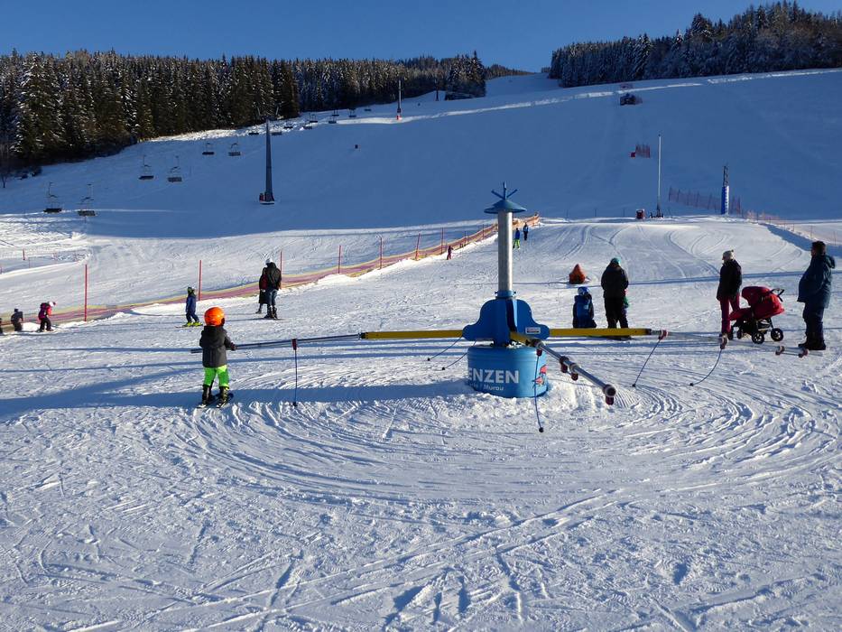 Grebenzen offers a dedicated learning area for children and beginners with a baby lift, magic carpet, and carousel. It can be used free of charge and is located right at the valley station. The ski school also uses the learning area. While parents relax on one of the sun terraces, children can easily learn to ski here.