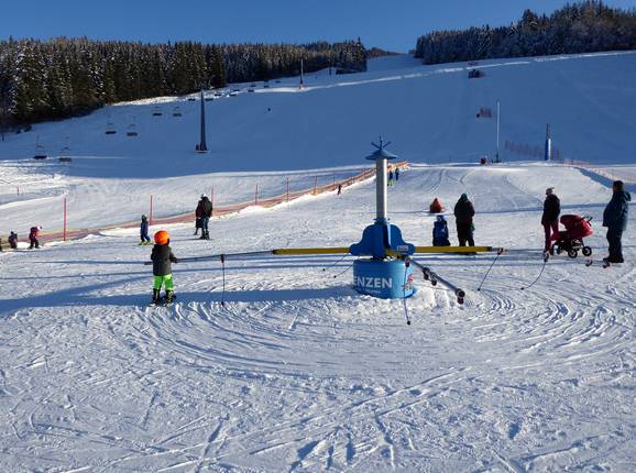 Grebenzen is very well suited for families. The dedicated learning area at the valley station is optimally equipped and can even be used free of charge. Children can also practice on the easy Sonnenlift (platter lift). This is also located at the valley station, and there are special points cards available for it. The red valley run at the chairlift is manageable for advanced children. A ski school and a ski rental with ski depot are also available at the valley station. Family discounts, such as youth rates for those under 28, are offered.