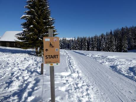 Two toboggan runs offer fun for the whole family. A 2 km long toboggan run leads along the 4-seater chairlift. The entrance to the tobogganing fun is right at the valley station. From Grebenzenhaus to the valley station, there is another 4.5 km long toboggan run. A shuttle bus runs to Grebenzenhaus.