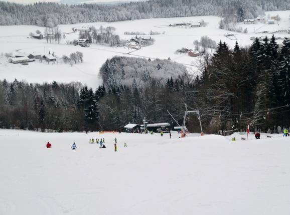 The Greising ski lift is an approximately 400-meter-long double T-bar lift that serves a sunny south-facing slope near Deggendorf. With its 70 meters of elevation difference, Greising is an ideal small ski area for children and beginners, and it has now existed for half a century. Generations of young winter sports enthusiasts have learned and practiced skiing and snowboarding here. Two ski schools offer their services at the Greising ski lift.