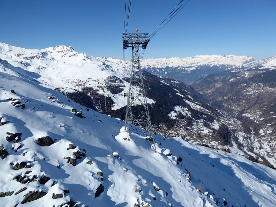 Aerial tramway/reversible ropeway at the ski resort Grimentz/​Zinal