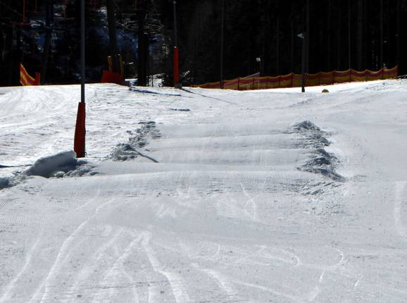There is no snowpark or halfpipe in the ski area. There are a few small wave tracks.