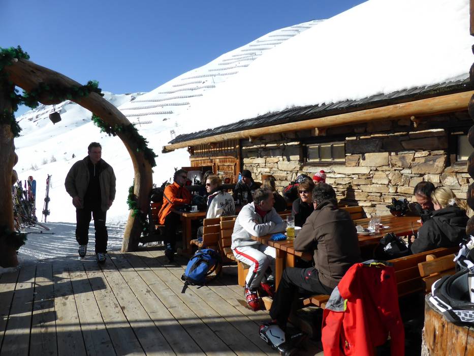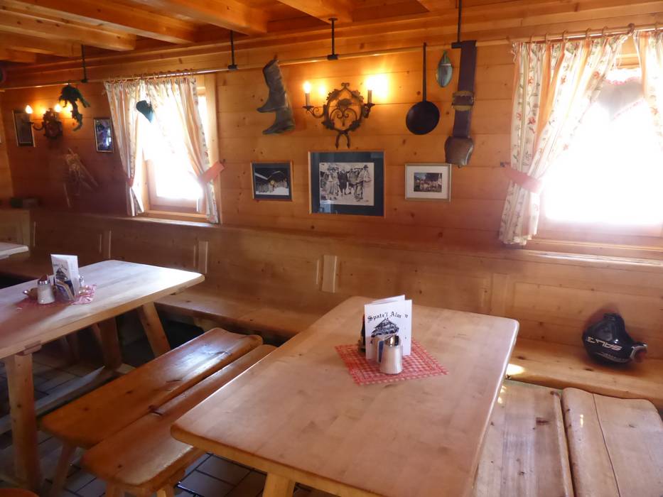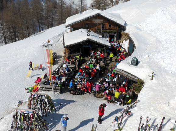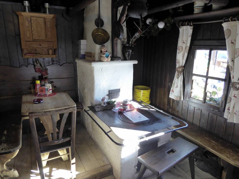 The ski hut has a very beautiful sun terrace and enjoys long hours of sunshine in the afternoon. Inside, the hut features old wood.