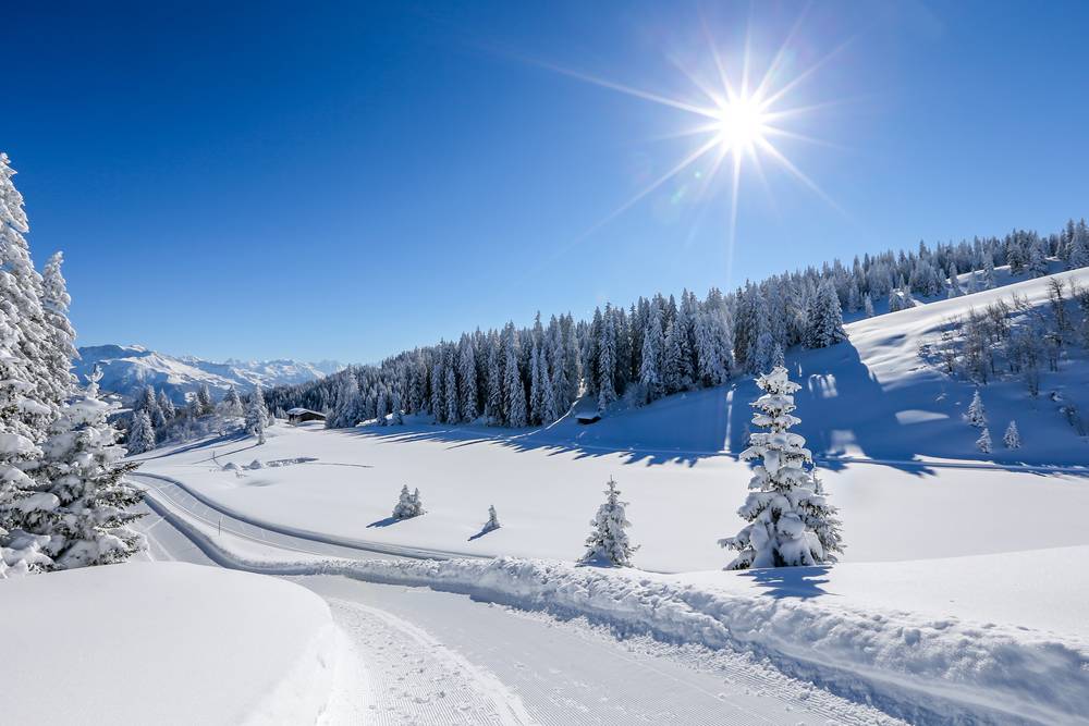 The daily groomed panoramic hiking trail is one of the most beautiful winter hiking trails in the Alps. Enjoy the small (2 km) or large (6 km) loop in an enchanting winter landscape.For the balance of body, mind, and soul, the new ViaVital with the Weisse Oase provides just what you need. The leisurely walk along ViaVital broadens your horizons on the topics of Gschichtä, Heldä, Landschaftä, Gööli, Tiär, and Pflanzä, while the Weisse Oase gives you strength and relaxation and fills your heart wi