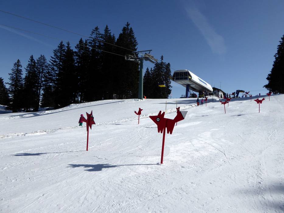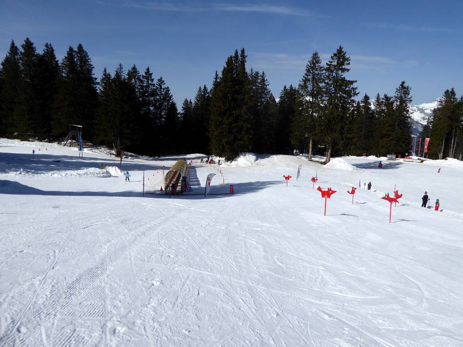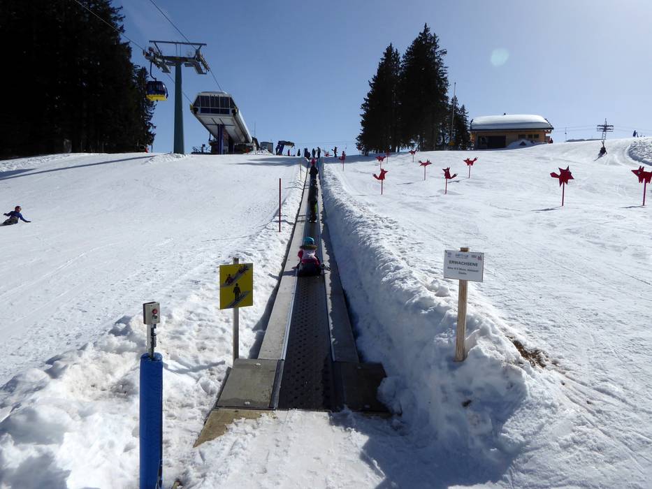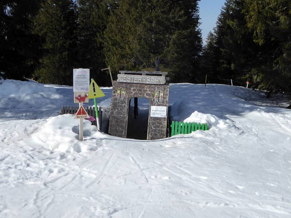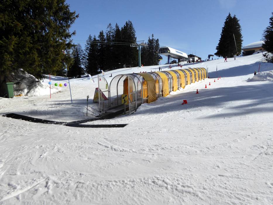 The children's area is located right next to the Schwänzelegg mountain station at an altitude of 1,800 meters. Use of the children's area is free of charge for all guests and children. You only need to purchase an ascent and descent ticket for the gondola lift. In the children's area, several conveyor belts provide access to around 10 small slopes. Children love the music tunnel conveyor belt and the funny figures. The two ghost trains (a large one ending at the Schwendilift and a small one in the children's area) make children's hearts beat faster. The children's carousel is especially popular with the little ones. There are also several small obstacles, so you can already practice for the big snow park. There really isn't much more you could wish for!