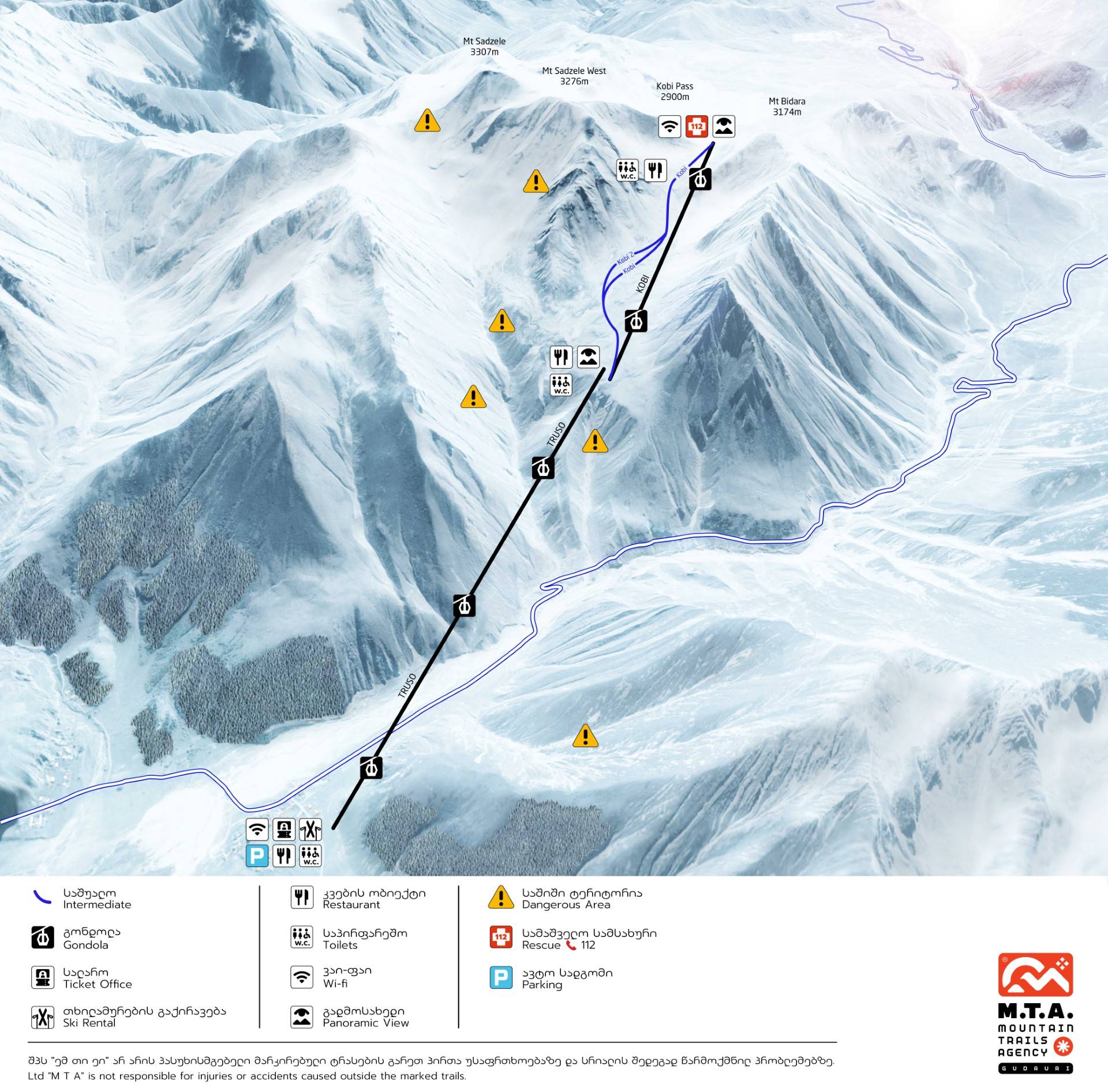 Gudauri (0.3 km), Kobi (0.5 km) Towns/villages at the ski resort
