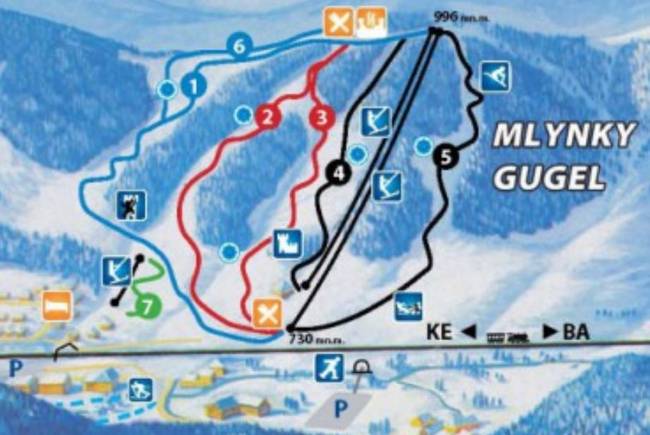 All lifts/cable cars at the ski resort Gugel – Mlynky