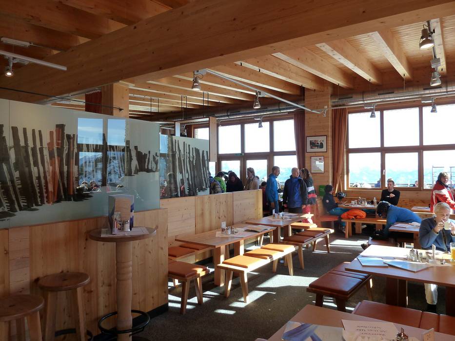 The panoramic restaurant offers a modern atmosphere with plenty of wood and large panoramic windows. The fantastic view can also be enjoyed on the spacious terrace. There is both typical alpine cuisine and regional specialties. Part of the restaurant offers table service, while another area is self-service.