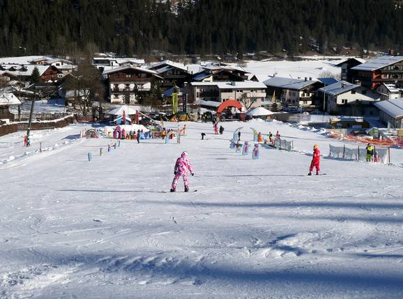 The highlight is the Triassic Kinderland. Children and beginners can practice perfectly on the magic carpet and the rope lift. The ski area also offers relatively easy slopes at the drag lift. Ski lessons are available.