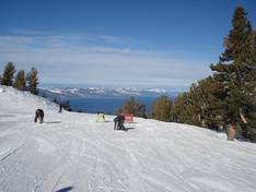 The Heavenly ski resort offers runs of all difficulty levels and numerous challenging (ungroomed) tree runs. The tree line is around 3,000 meters, so the slopes lead down through forest clearings. Only in the uppermost area of the ski resort are there sparse forests. This makes it an ideal terrain for powder skiing in the glades and bowls. While skiing and snowboarding, you always have a magnificent view of the deep blue Lake Tahoe. Beginners will find their area at several base and mountain stations, with easy slopes and dedicated lifts.