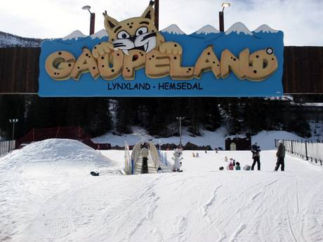 The large children's and beginners' area (Kinderland) in the Hemsedal ski resort is located right in front of the SkiStar Lodge and offers not only covered conveyor belts but also several platter lifts. This is the ideal place for little ones to learn winter sports in a safe environment.