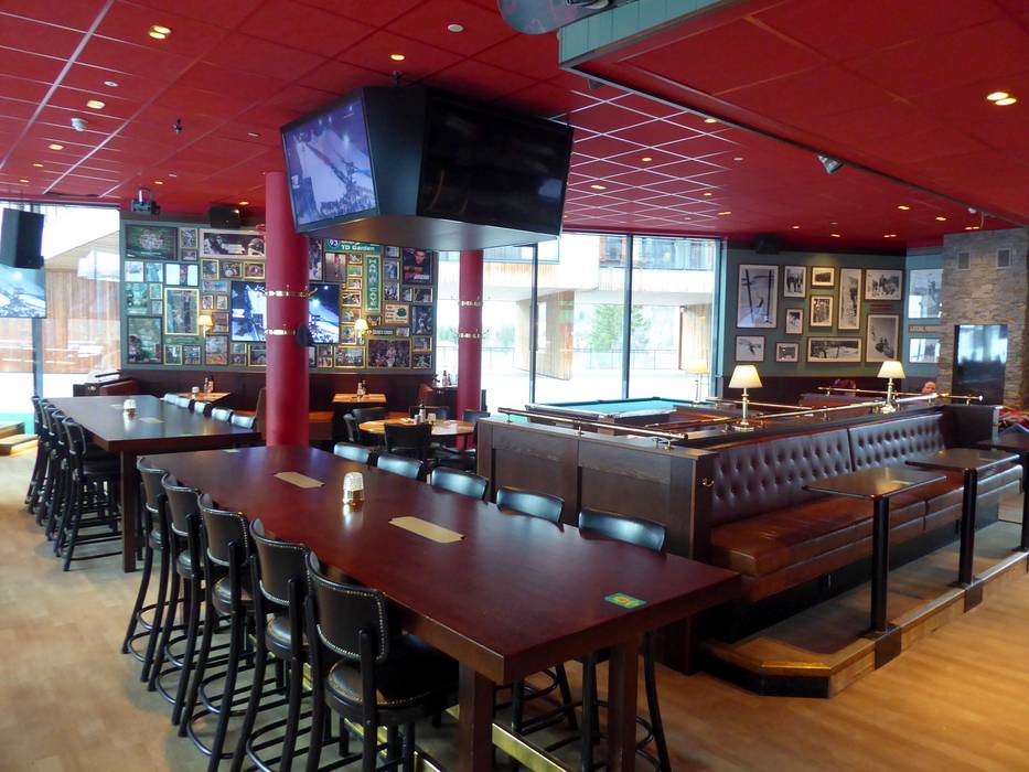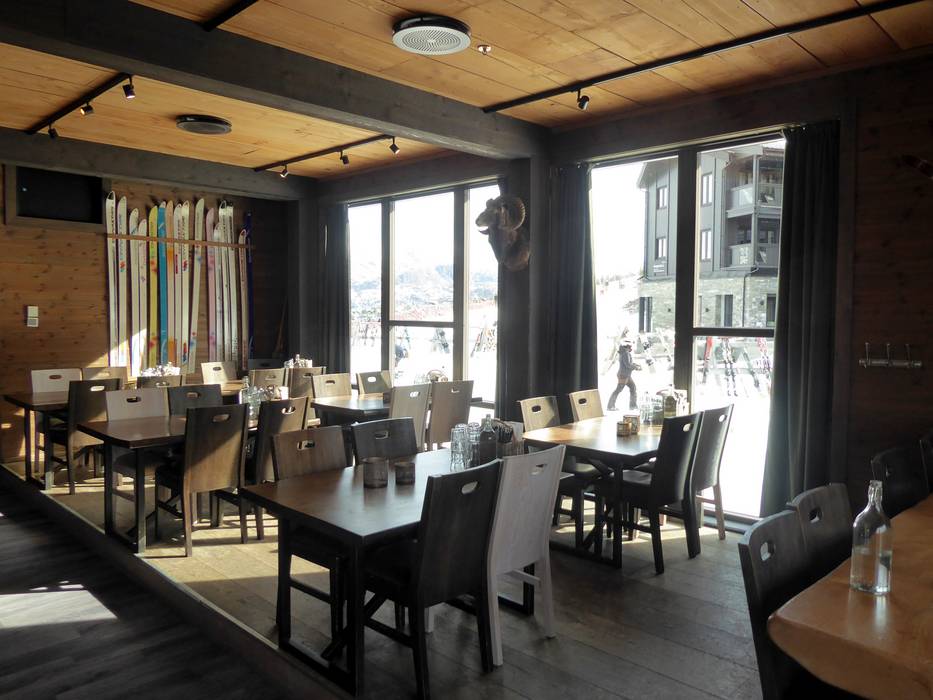 The restaurant is modern, but with a cozy touch. The large panoramic windows offer a great view of the slopes. International classics such as pizza, burgers, and fish and chips are served. A children's menu completes the offering. After skiing, the bar invites you to enjoy a drink.
