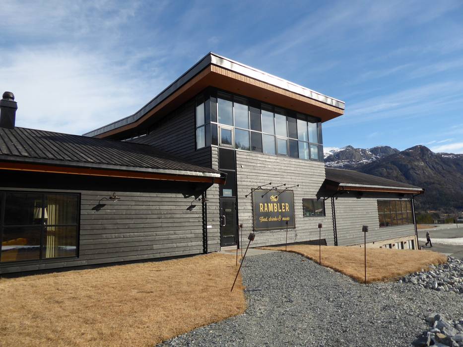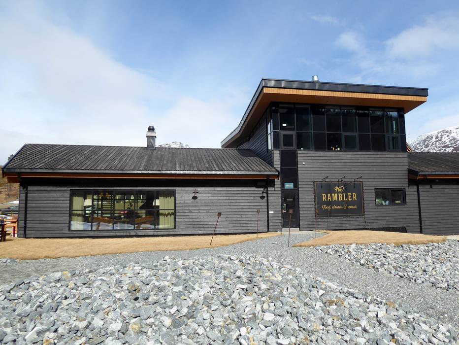 The Rambler restaurant serves a mix of Norwegian classics and international dishes. The burgers, meat dishes, and vegan options are especially popular. On cold days, an open fireplace provides warmth. In good weather, the sun terrace is a real attraction.