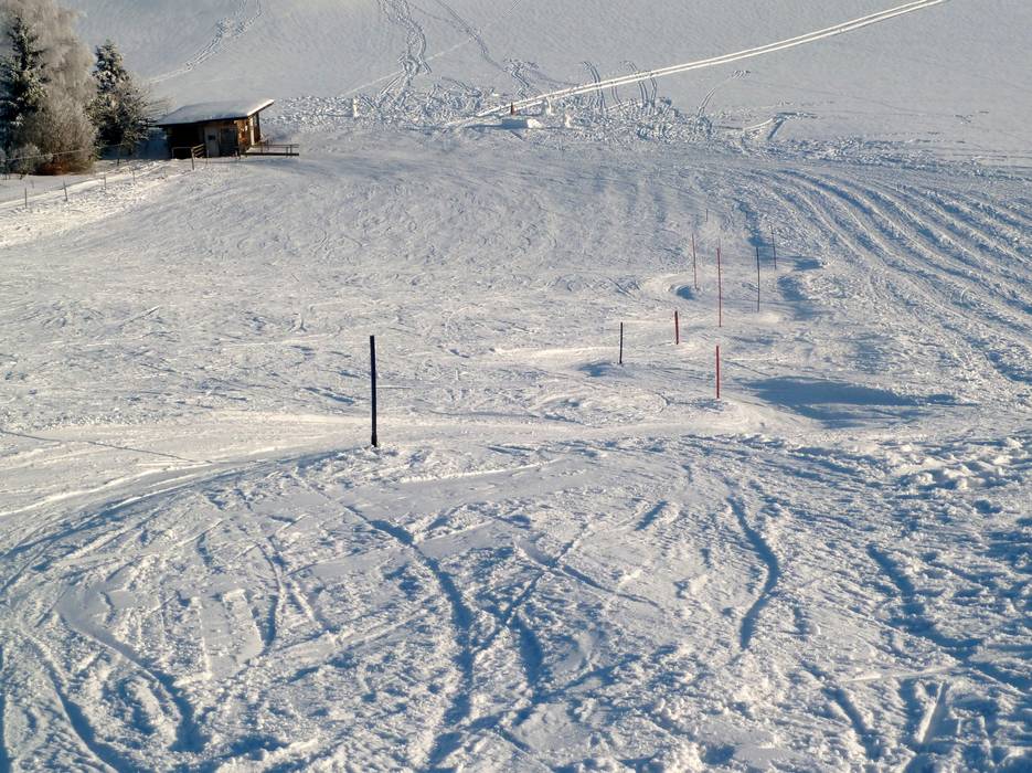 There is an easy slope. With enough snow, you can go off-piste in deep snow on the right side of the rope lift.