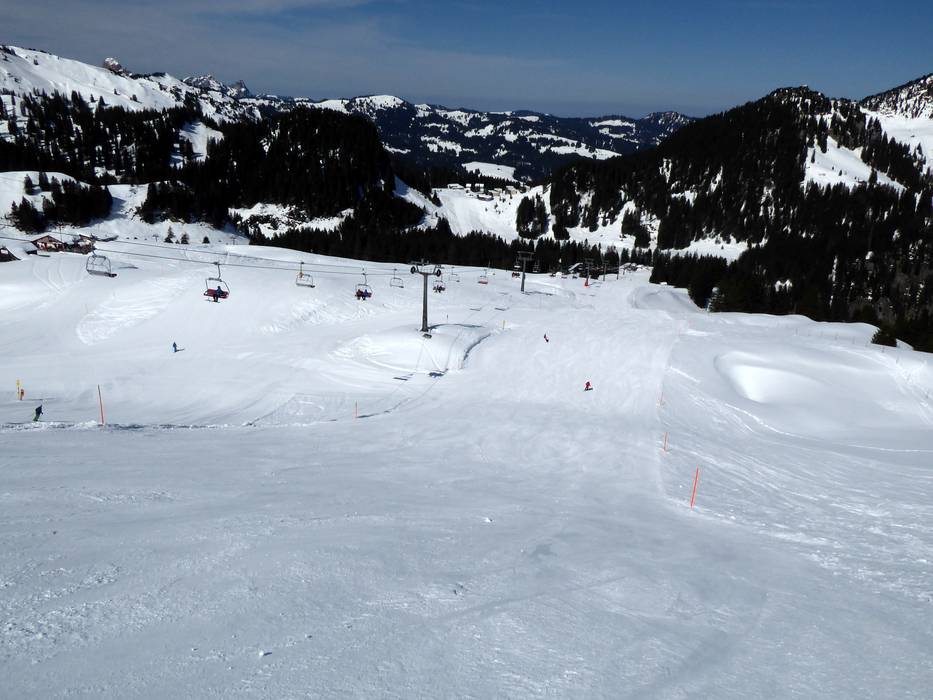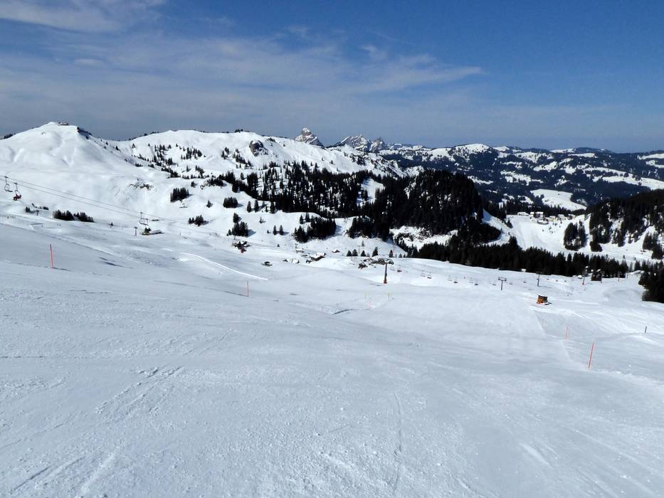 Especially among the medium-sized ski resorts, you can still find some insider tips in Switzerland: The slopes in the Hoch-Ybrig ski area stretch between the villages of Unteriberg and Oberiberg in the canton of Schwyz. For skiing and snowboarding, you’ll find mostly treeless slopes of all