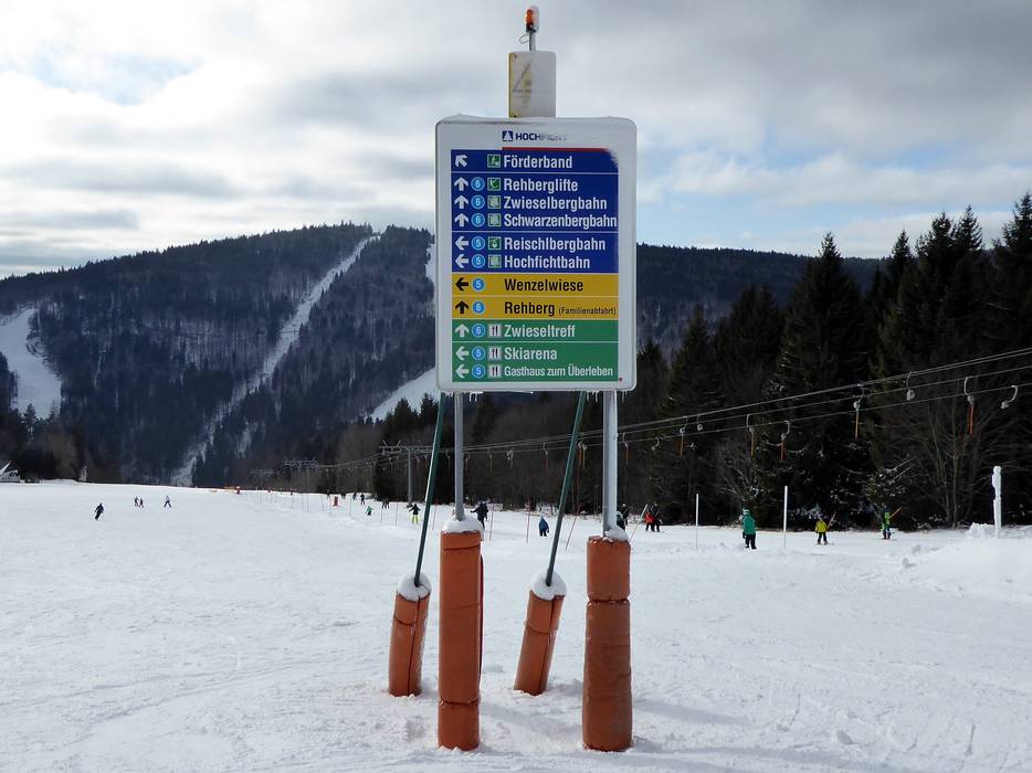 The Hochficht ski resort is located in the tri-border region of the Bohemian Forest. The lifts in the winter sports area provide access to the slopes of Zwieselberg (1,163 m), Reischlberg (1,281 m), and Hochficht (1,338 m). The resort offers both steep runs, which are also used for FIS races, and