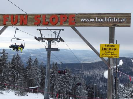 The Hochficht ski resort offers a snow park, a funslope, and wave tracks distributed throughout the winter sports area.