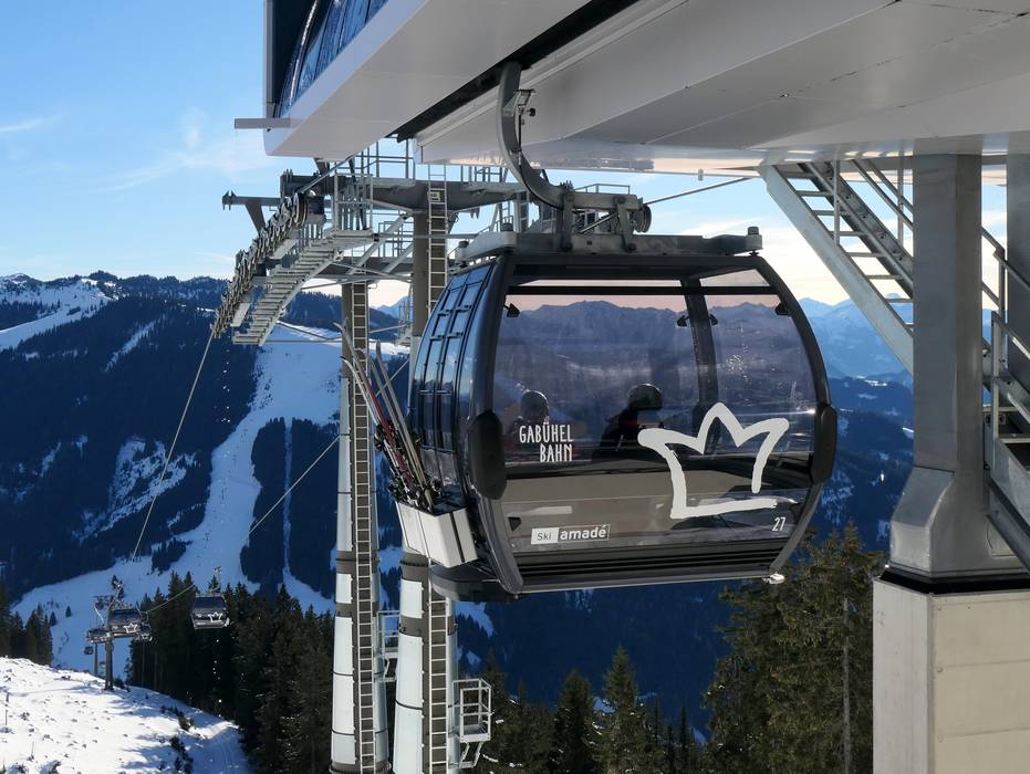 Starting from winter 2019/20, the new 10-seater Gabühel gondola lift improves the connection from Dienten up to Gabühel. It replaces the aging Gabühel 2-seater chairlift. The route of the new Gabühelbahn is longer, and both the mountain and valley stations are newly and better positioned.